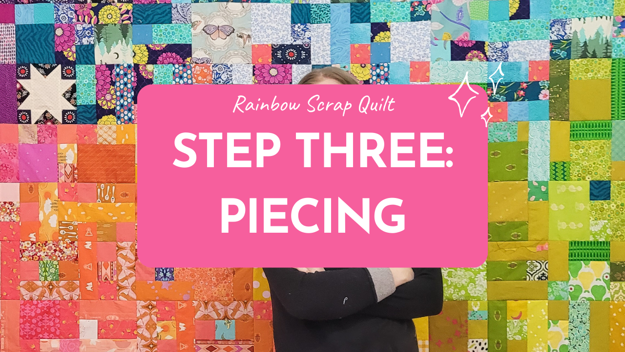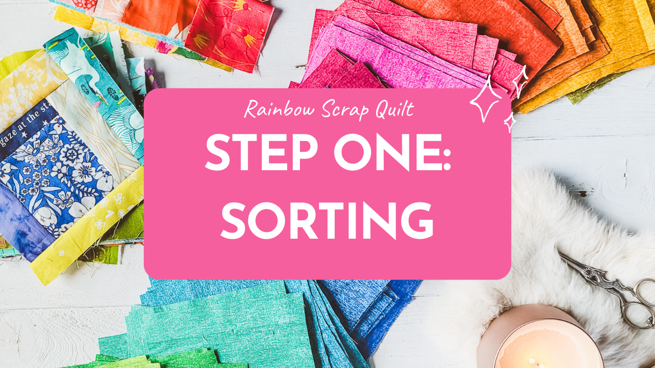 Watch the videos below to learn to sort, cut, and sew your quilt scraps into a rainbow quilt that looks like improv, but skips the chaos. (click the little triangle in the middle of the video to press play!)